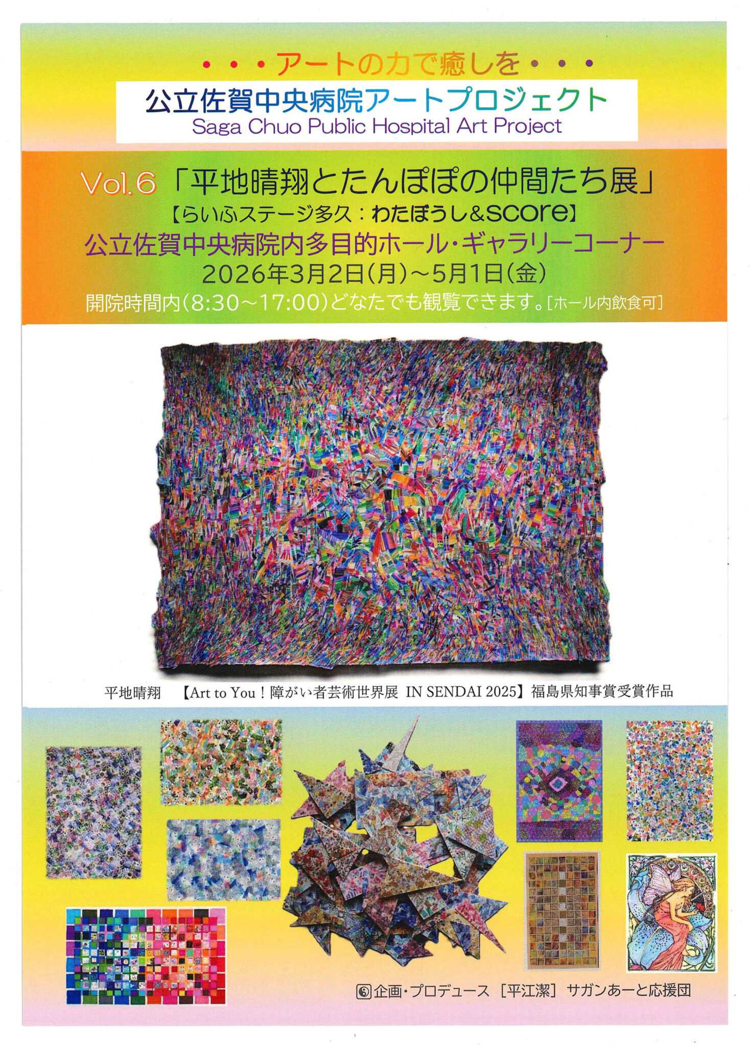 | イベント名 | 公立佐賀中央病院アートプロジェクト Vol.6「平地晴翔とたんぽぽの仲間たち展」 |